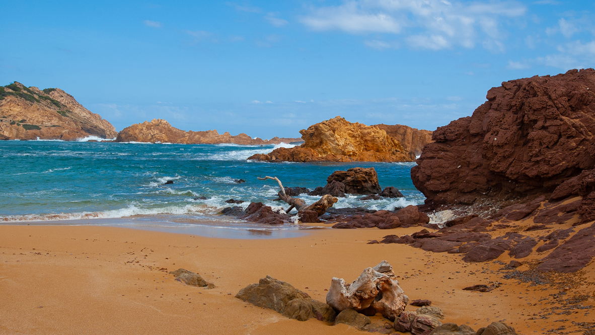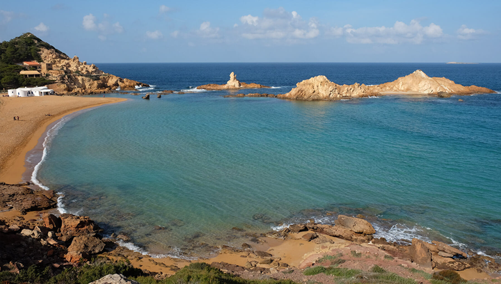Cala Pregonda liegt 10 km von Es Mercadal entfernt zwischen dem Strand von Binimel.là und Cap de s’Ailaró.