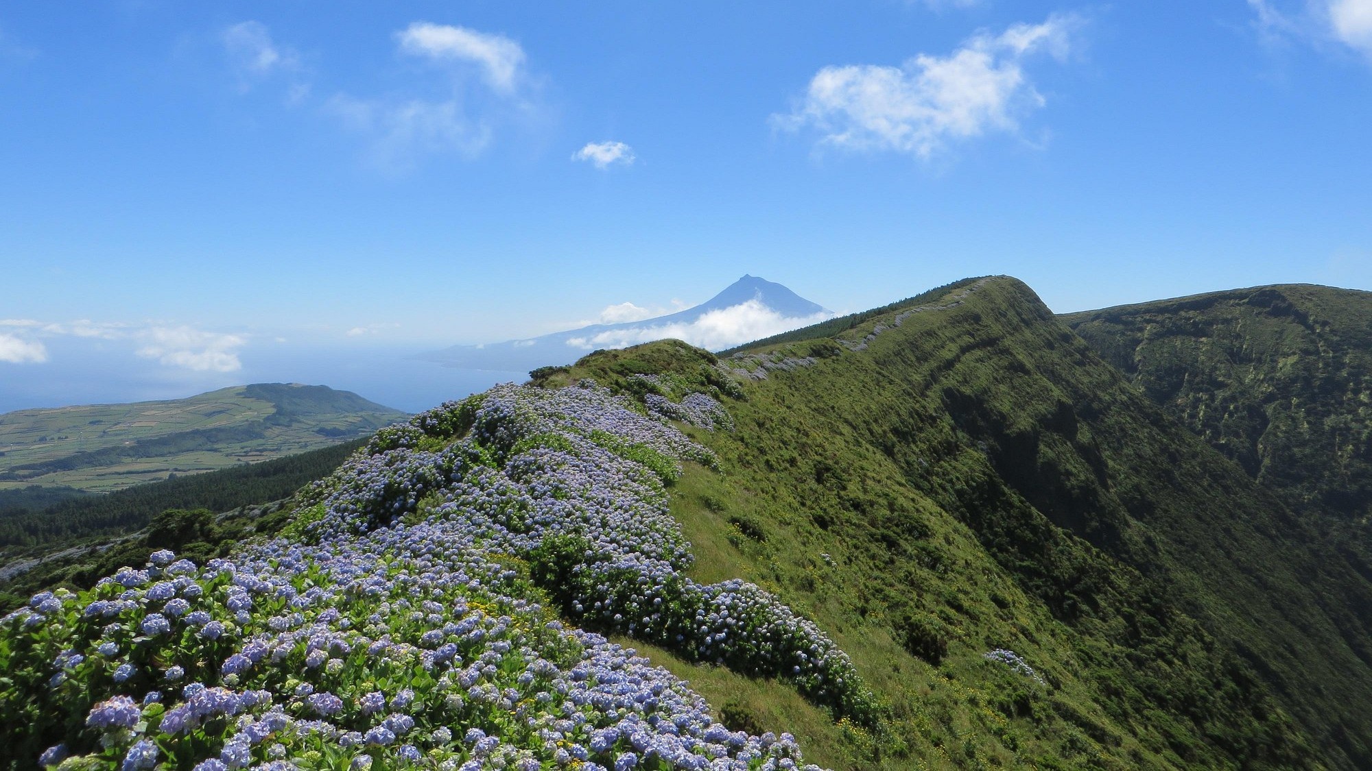 Bei klarem Wetter bietet der Kraterrand Panoramablicke über die gesamte Insel. Von hier sieht man die Küstenlinie, das Meer und oft auch die Nachbarinseln Pico, São Jorge und Graciosa. Die Caldeira ist ein wichtiger Naturraum mit geschützter Vegetation.