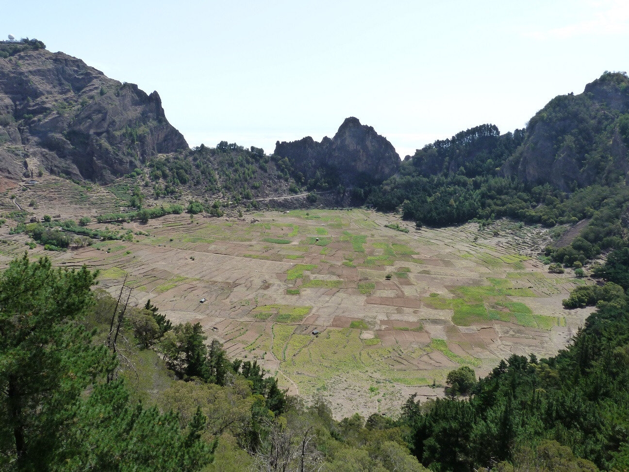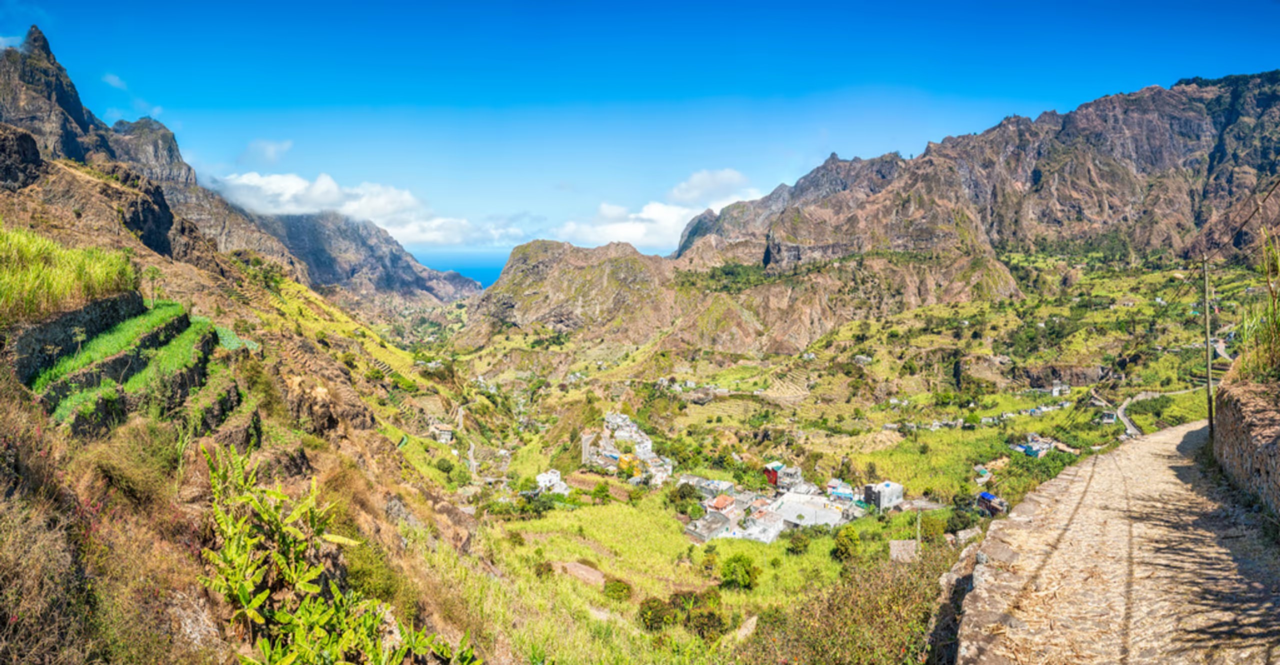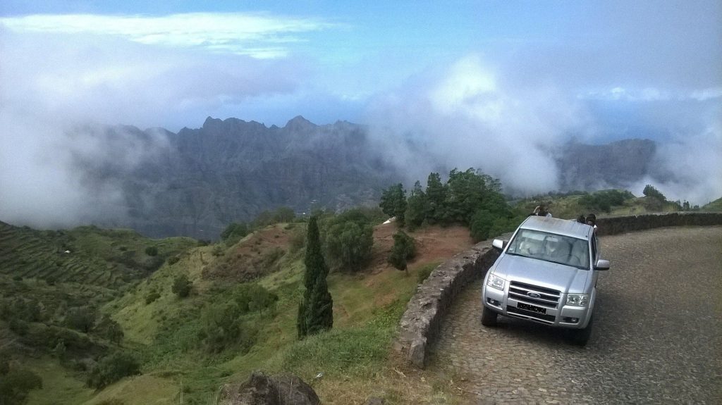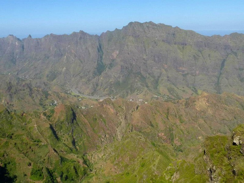 Die Route Estrada a Corde durchquert die spektakulärsten Landschaften von Santo Antao. Zum Beispiel der kultivierte Vulkankrater, üppige Wälder, Schluchten und verschiedene Feldfrüchte. Entlang des Weges gibt es spektakuläre Aussichtspunkte über Bergrücken. Die Strecke der Estrada a Corda beginnt in Porto Novo im Süden. Die Strasse hier führt über Hänge und alte Lavahügel. Je höher du gehst, desto schöner und grüner ist es. An einer Stelle fährt man am Rand des alten Vulkankraters bei Cova de Paul entlang. Hier gibt es wunderschöne Wanderwege, darunter die kurvenreiche Wanderroute hinunter zur Küste bei Ribeira do Paul. Wenn man noch ein paar Kilometer mit dem Auto fährt, passiert man das Bergdorf Corda. Ein Stück weiter und auf einer Höhe von etwa 1.000 m fährt man auf einem Bergrücken, der Delgadinho-Bergrücken. Hier hat man von beiden Seiten eine beeindruckende Aussicht. Die Strasse hier ist nur wenige Meter breit mit tiefen Abgründen auf beiden Seiten. Seien Sie versichert: Es gibt eine Mauer, die Sie nicht hinunterfahren können. Von hier aus führt die Strasse weiter ins Landesinnere in Richtung Ribeira Granda.