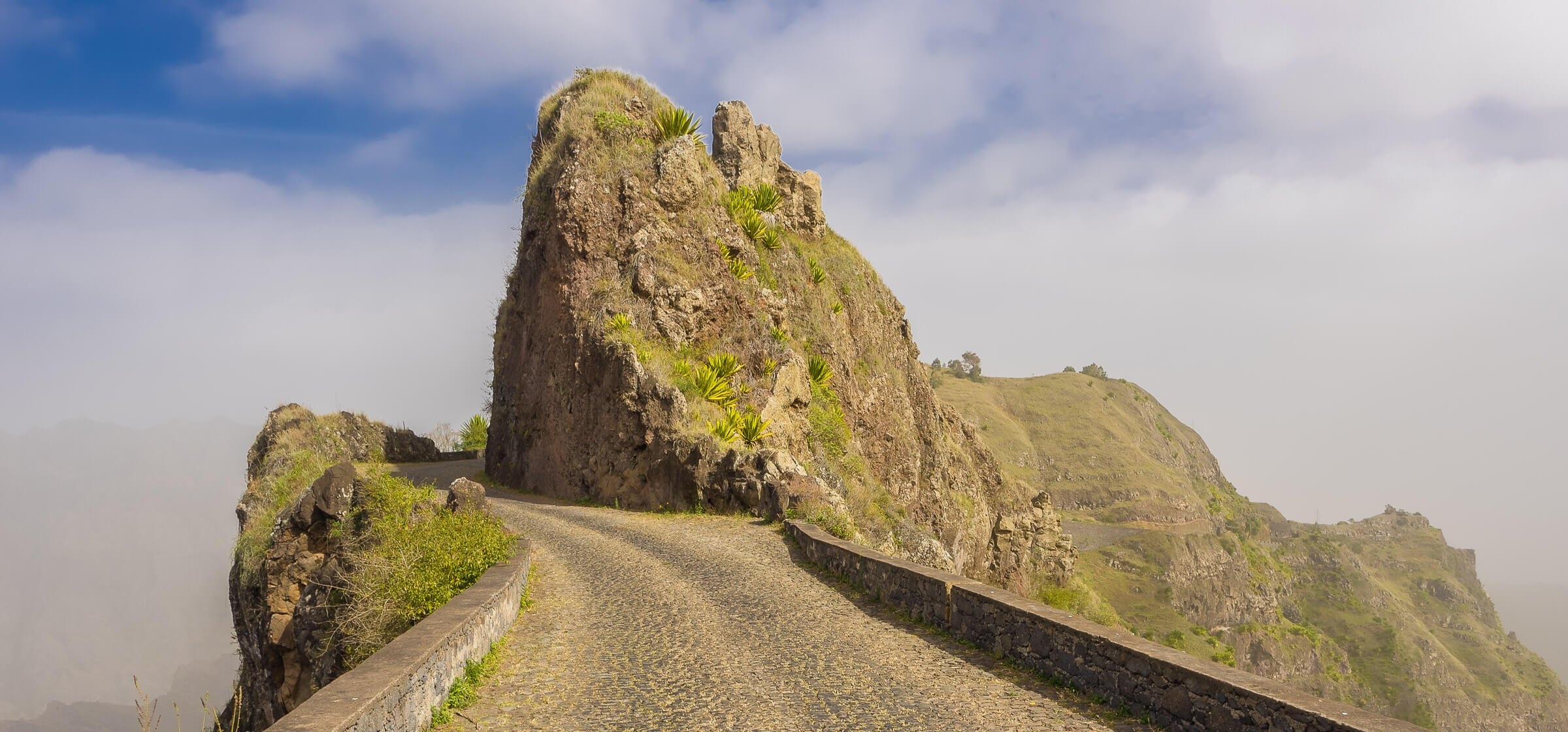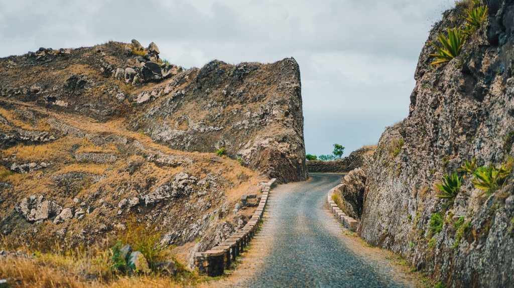 Die Estrada a Corda ist die Strasse, die von Porto Novo nach Nordosten bis nach Ribeira Granda, der Verwaltungshauptstadt von Santo Antao, führt. Diese Nationalstrasse mit der Nummer EN1-SA-01 ist nicht irgendeine Strasse. Es ist die schönste Route, die man in Kap Verde nehmen kann. Die 36 km lange Strasse durchquert eine wunderschöne Landschaft und besteht selbst aus etwa 15 Millionen Kopfsteinpflaster. Diese Kopfsteinpflastersteine sind alle unregelmässig und werden einzeln von Hand verlegt. Eine mühsame Arbeit. Aufgrund des schwierigen Geländes und der begrenzten Anzahl von Arbeitern dauerte die Fertigstellung dieser handgelegten Strasse nicht weniger als 30 Jahre. Es ist nicht ohne Grund, dass die Kapverdischen sehr stolz darauf sind.