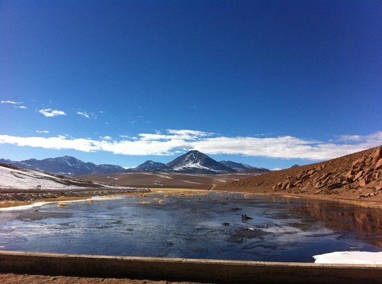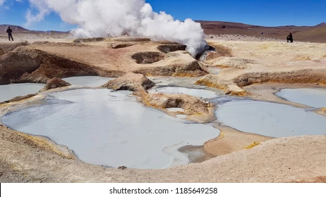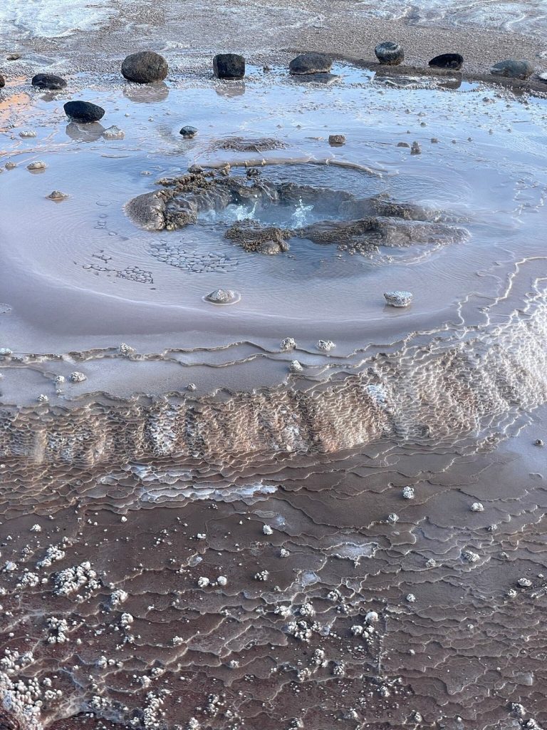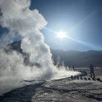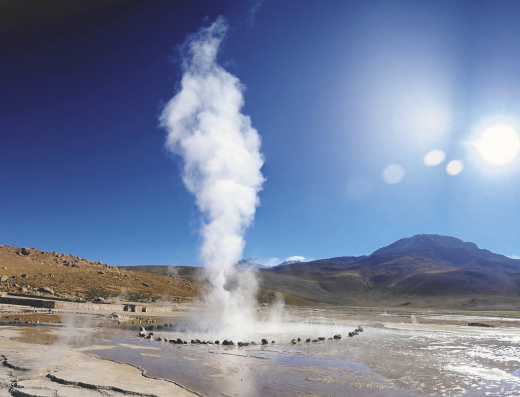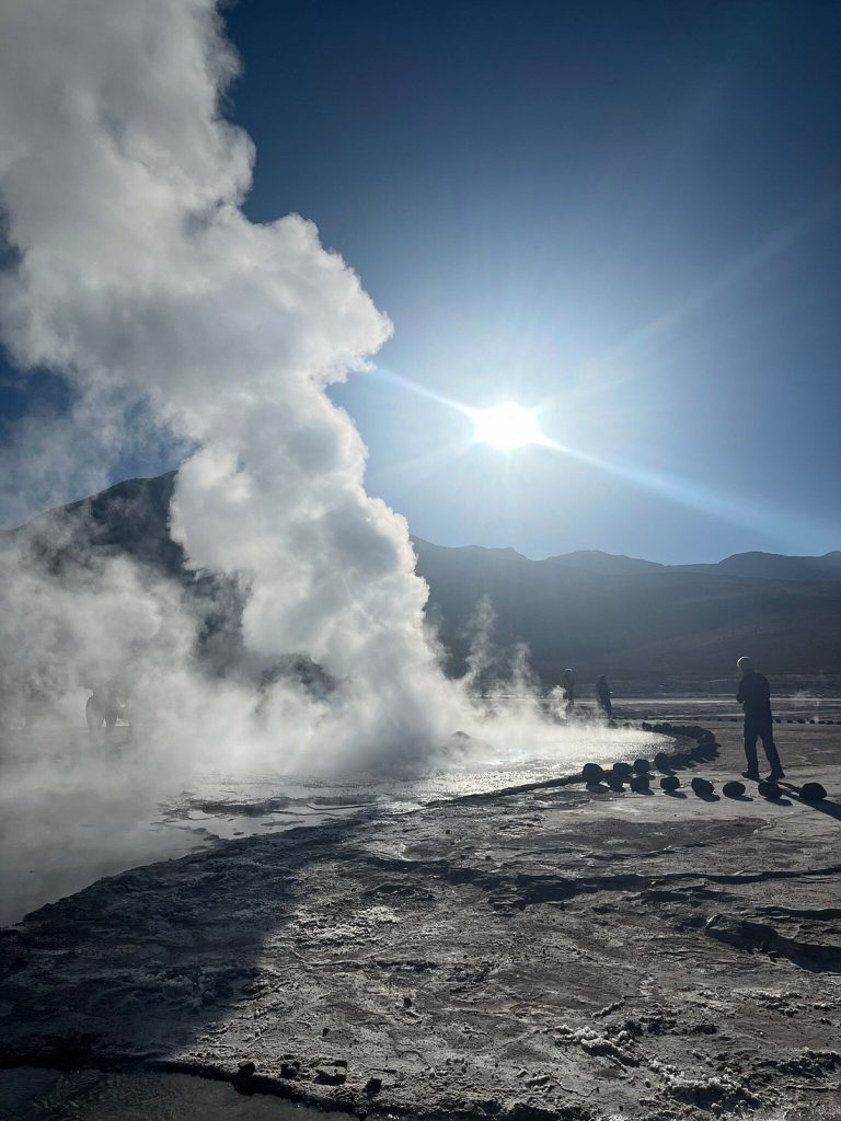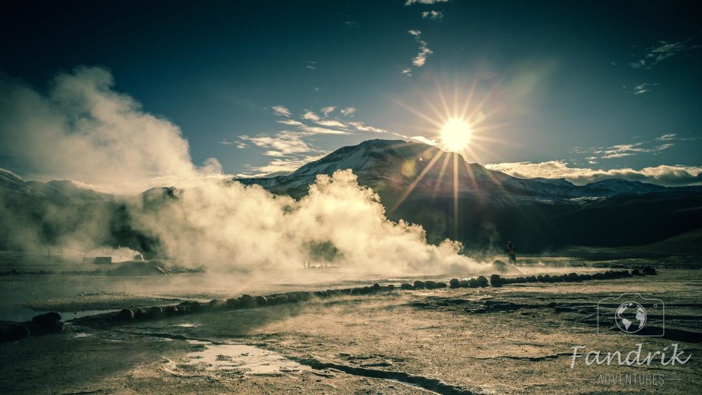 Die El Tatio Geysire befinden sich 95km nordöstlich von San Pedro de Atacama und liegen auf einer Höhe von 4.325m. Sie erstrecken sich über eine Fläche von 30km² und bestehen aus 80 Einzel-Geysiren, wovon 30 hoch aktiv sind. Damit ist das Geysirfeld El Tatio das grösste Geysirfeld auf der Südhalbkugel und das drittgrösste der Erde. Nur die Geysirfelder im Yellowstone Park und das Tal der Geysire Dolina Geyserov können diese Dimensionen noch übertreffen. Die rauchenden Dampfsäulen bei -5°C in der aufgehenden Morgensonne zu betrachten ist ein Erlebnis der besonderen Art und bietet großartige Fotomotive.