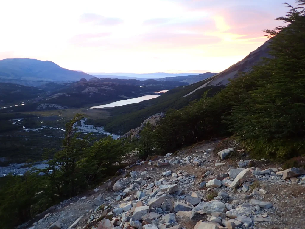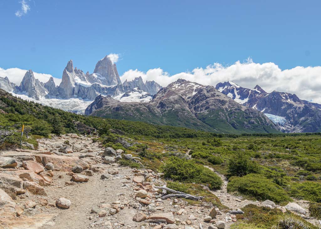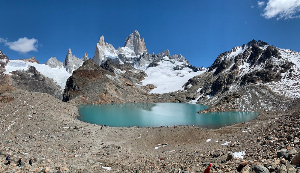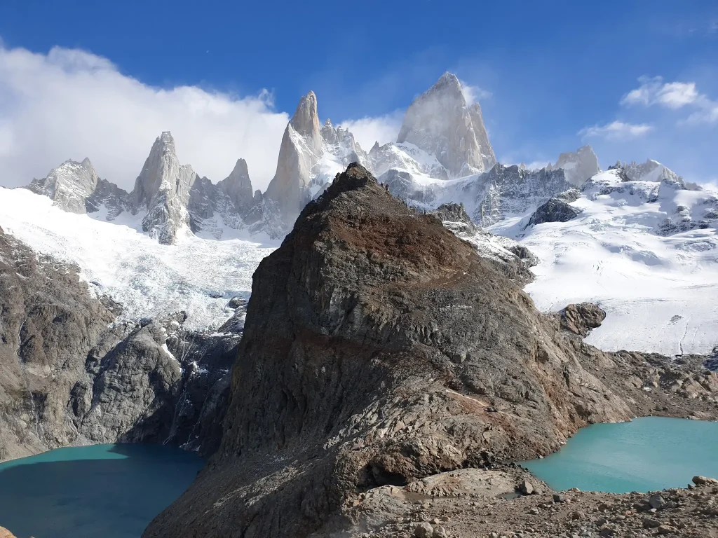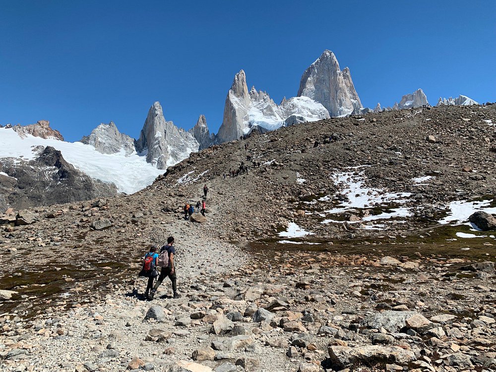 Der Weg endet auf dem Kamm der alten Stirnmoräne des De los Tres-Gletschers (ein riesiges, bogenförmiges Gebilde, in dem sich heute die Lagune befindet, die durch den Vorstoß und den anschließenden Rückzug des Gletschers entstanden ist) und bietet einen außergewöhnlichen Blick auf die Lagune und den De los Tres-Gletscher. Von hier aus hat man den besten Blick auf die Granitwand des Mount Fitz Roy und die umliegenden Gipfel.