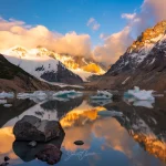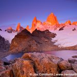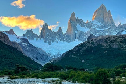 Wenn Sie sich die Mühe machen, bei Sonnenaufgang anzukommen, werden Sie doppelt belohnt, denn Sie werden Zeuge des außergewöhnlichen Moments, in dem die Hügel von den ersten Sonnenstrahlen rot gefärbt werden. Sonnenaufgang an der Laguna de los Tres Wenn Sie die Moräne hinuntergehen und die Lagune bis zu ihrem natürlichen Abfluss umgehen, finden Sie einen Weg, der zu einem weiteren atemberaubenden Aussichtspunkt führt: die einsame Laguna Sucia und ihre Hängegletscher.