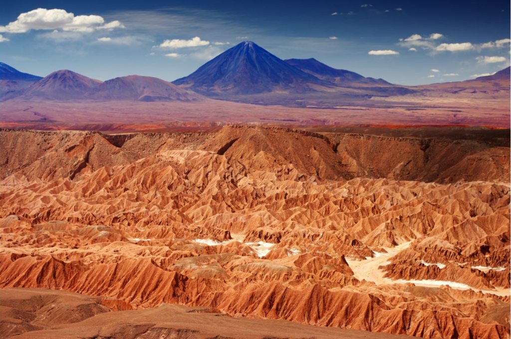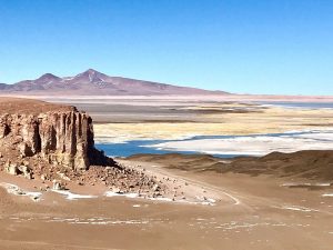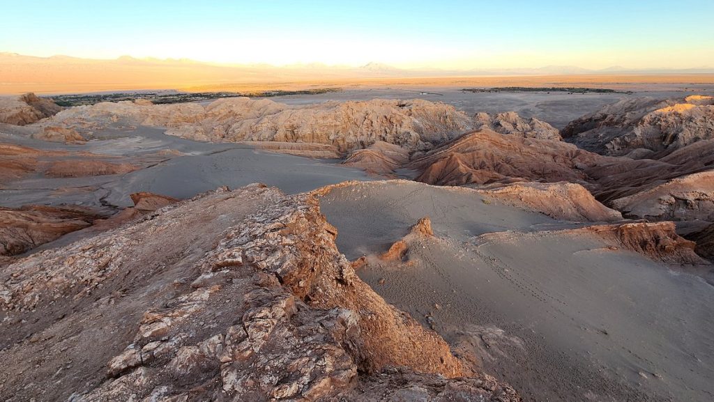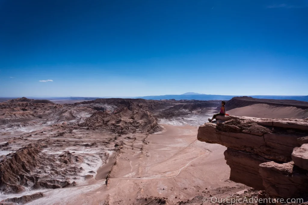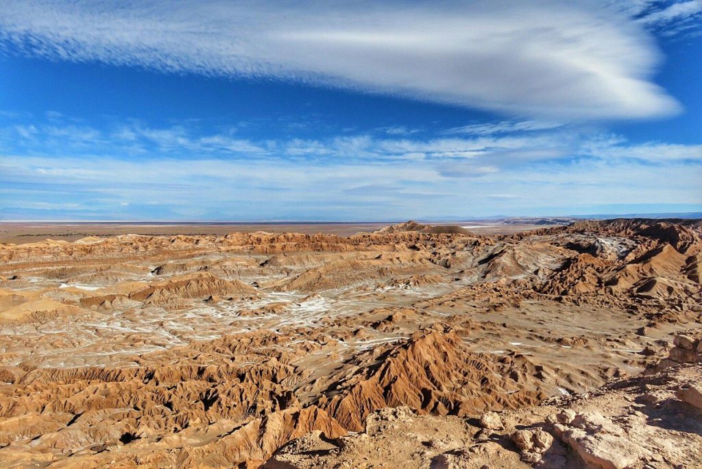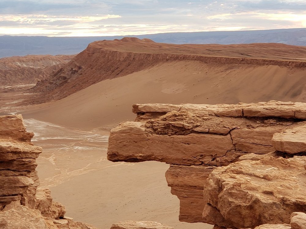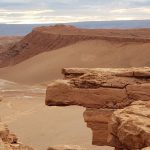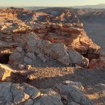 El Mirador de Kari, gelegen auf 2.550 m ü.d.M. Dieser als «Piedra del Coyote» bekannte Aussichtspunkt ist eines der berühmtesten Postkartenmotive von San Pedro de Atacama und bietet einen großartigen Panoramablick auf die Cordillera de la Sal, wo Wasser, Wind und Temperatur gemeinsam diese interessante Schlucht gebildet haben.