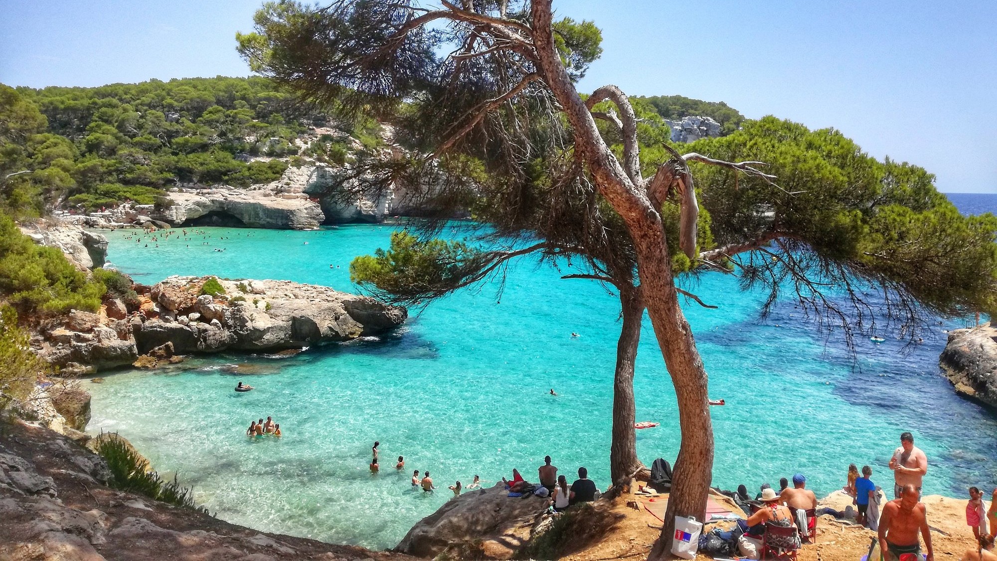Sandstrand in felsiger Bucht. Der Cala Mitjana Strand ist ein feinkörniger Sandstrand, der von Felsen und Bäumen umgeben ist. Das Wasser ist türkisblau und erinnert an die Karibik. Der Strand fällt sehr flach ins Meer ab und gilt als sehr ruhig. Von dem Ferienort Cala Galdana aus ist der Strand zu Fuss innerhalb von 30 min erreichbar.