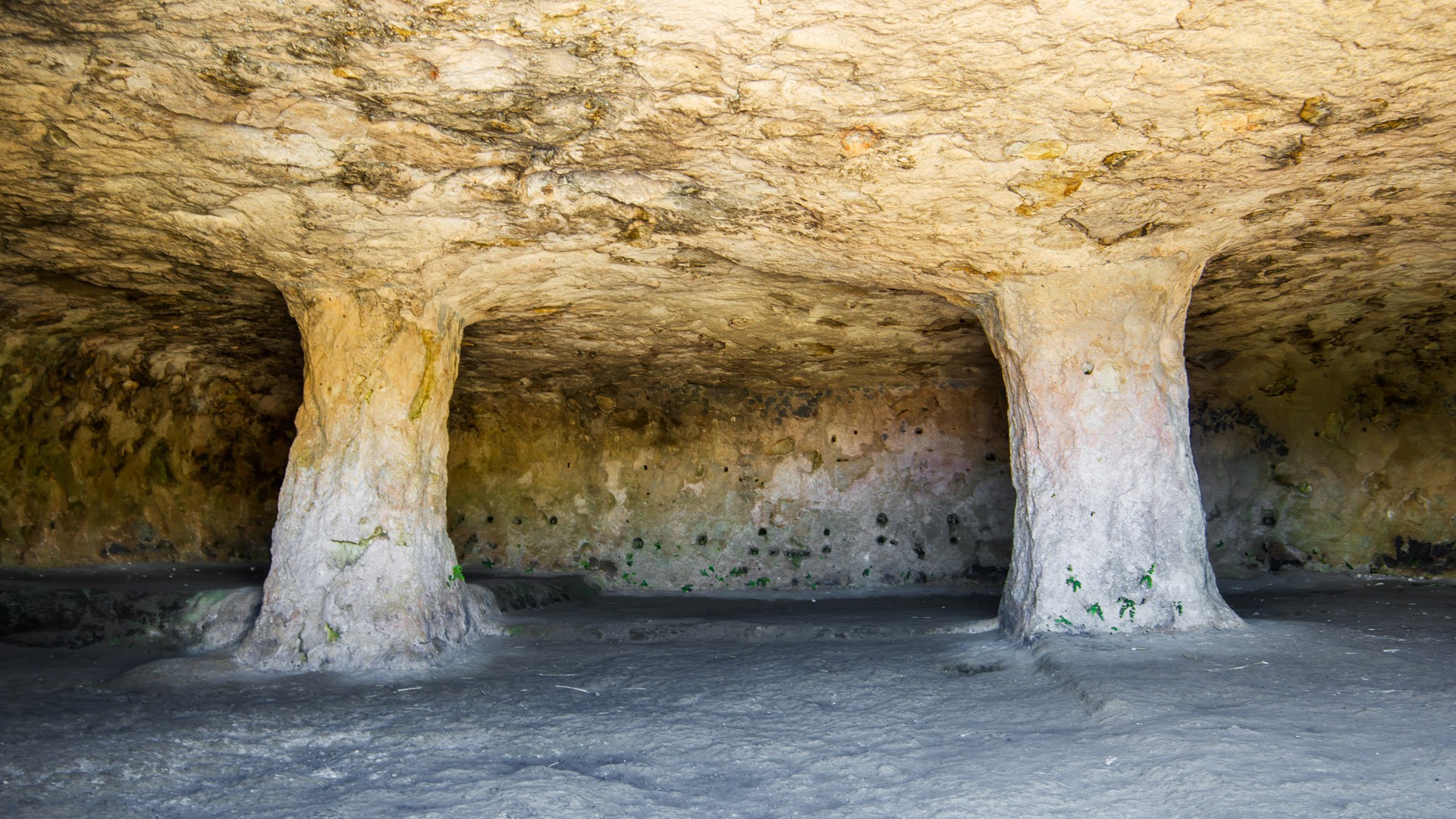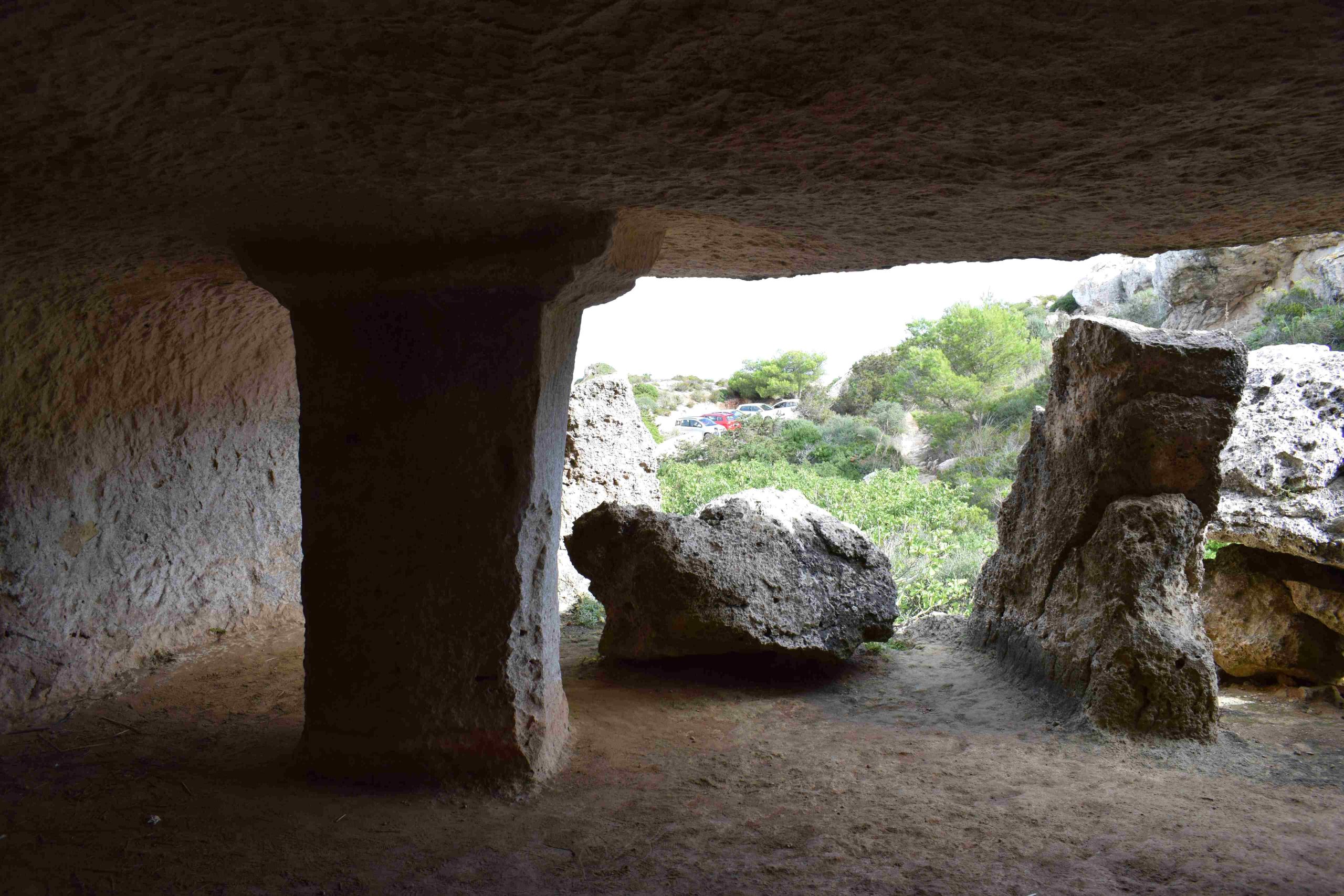 Das Innere der grösseren Höhlen ähnelt dem runden Baustil der Wohngebäude aus der posttalayotischen Zeit (550 bis 123 v. Chr.). Einige haben kleine Vorhöfe. In Cala Morell sind sowohl ebene Höhlen als auch Höhlen mit gestuften Böden zu finden. Säulen grenzen mitunter die aus dem Fels gehauenen Räume ab. Eine Höhle weist an der Fassade Reliefs auf.