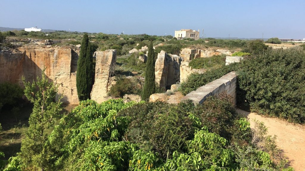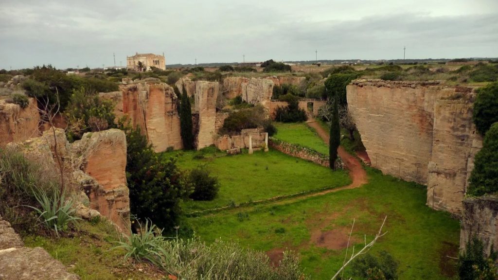 Hier wurde der Stein für den Bau der Häuser auf der Insel geschlagen. Ohne es zu wissen, erschufen so die menorkinischen Steinmetze mit der Arbeit ihrer Hände diesen eindrucksvollen Ort. Der Steinbruch war vom 19. Jahrhundert bis Ende des 20. Jahrhunderts in Betrieb. Bis 1960 wurde der Stein per Hand abgetragen, dann erleichterte die Technik die Arbeit der Steinmetze. Nach der Schliessung im Jahr 1994 wurde der Steinbruch teilweise zugeschüttet und jahrelang als Gemüsegarten genutzt, bis die gemeinnützige Stiftung „Lithica“ ihn vor dem Verfall rettete und zu dem Freizeit- und Kulturraum machte, der er heute ist.