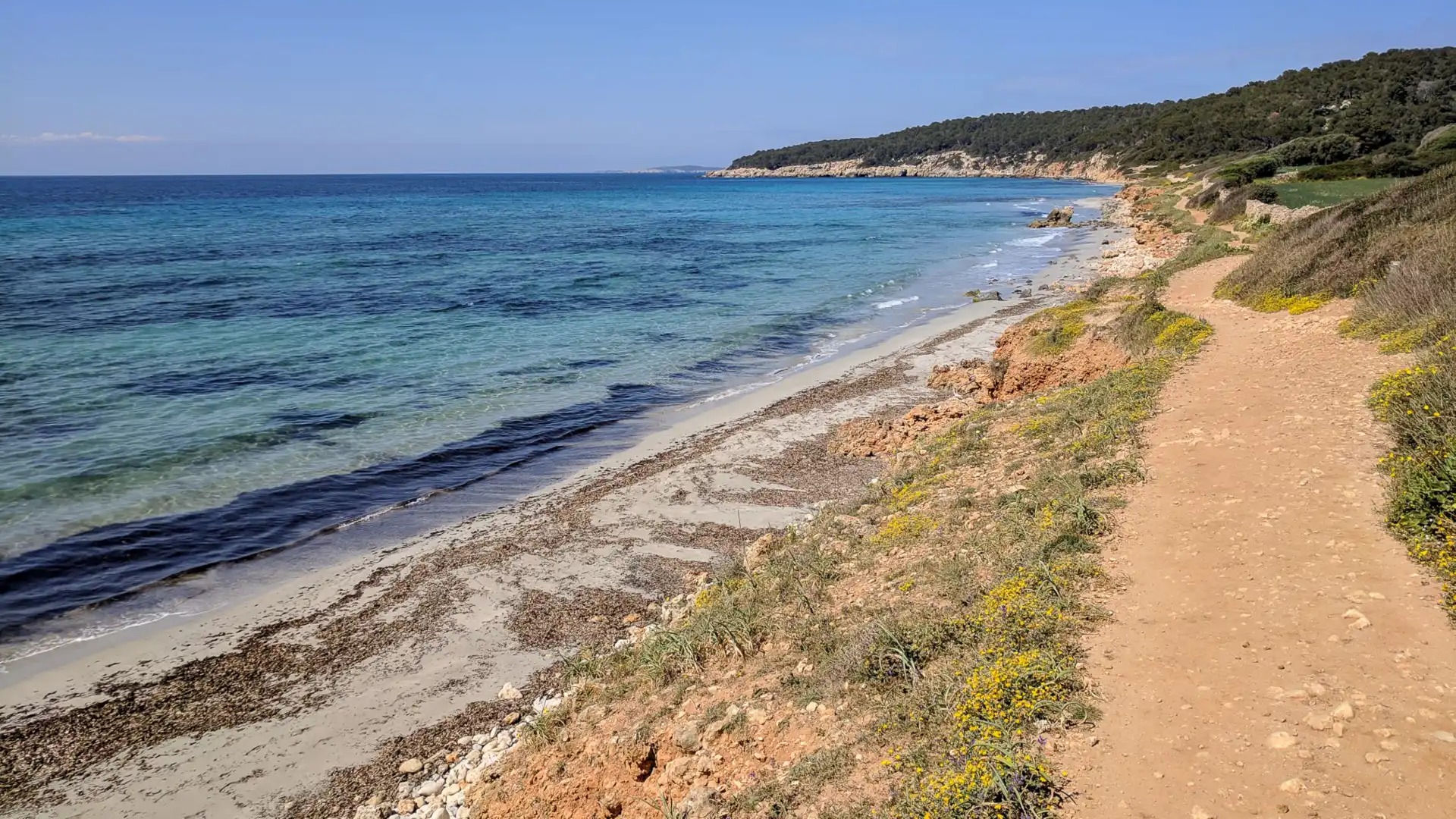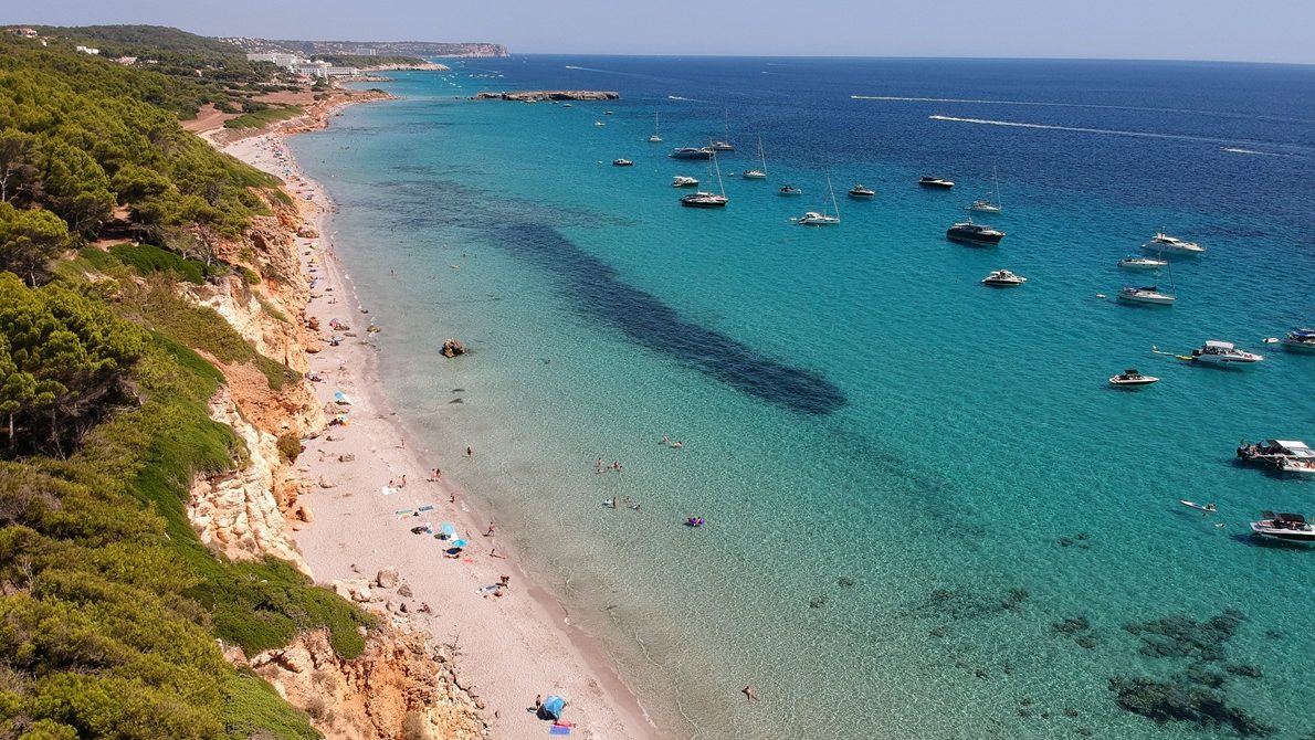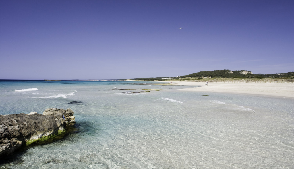 Platja de Binigaus ist 4 km von es Migjorn Gran entfernt, zwischen Puntas Rabiosa und Rodona gelegen, sowie nahe der Urbanisation Sant Tomàs (an diesen Strand gelangt man von diesem Wohnviertel über Camí de Cavalls in einem Fussweg von einer Viertelstunde).