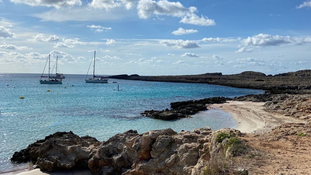 Vom Ufer mit dem feinsten weissen Sand aus können Sie die inspirierenden Felseninseln Illots de Binibeca erblicken. Im Sommer hat der Strand eine Strandbar, an der Sie erfrischende Getränke am Meer und den Verleih von Liegestühlen und Sonnenschirmen geniessen können. Auf den Dünen im Hintergrund des Strandes wurzeln Kiefern, die im Sommer guten Schatten spenden. Wenn Sie mit der Familie reisen, ist der Strand ideal für Kinder, denn das kristallklare Wasser ist seicht. Es ist auch ein ausgezeichneter Ort, um zu tauchen, mit sandigen Meeresböden und Posidonia, auf dem viele Arten leben und sich fortpflanzen. Der Strand liegt in der Wohnsiedlung Binibeca Vell, deren Besuch Sie nicht verpassen sollten. Es handelt sich um eine einzigartige Ansammlung von Gebäuden, die vom Architekten Antoni Sintes als altes Fischerdorf konzipiert wurden.