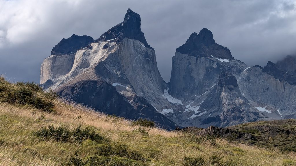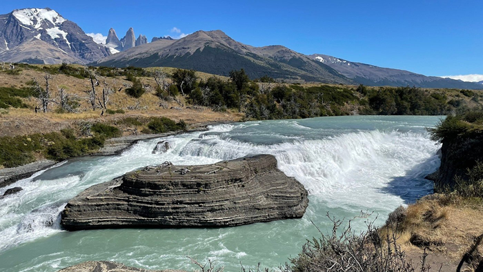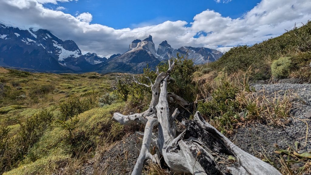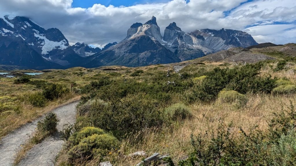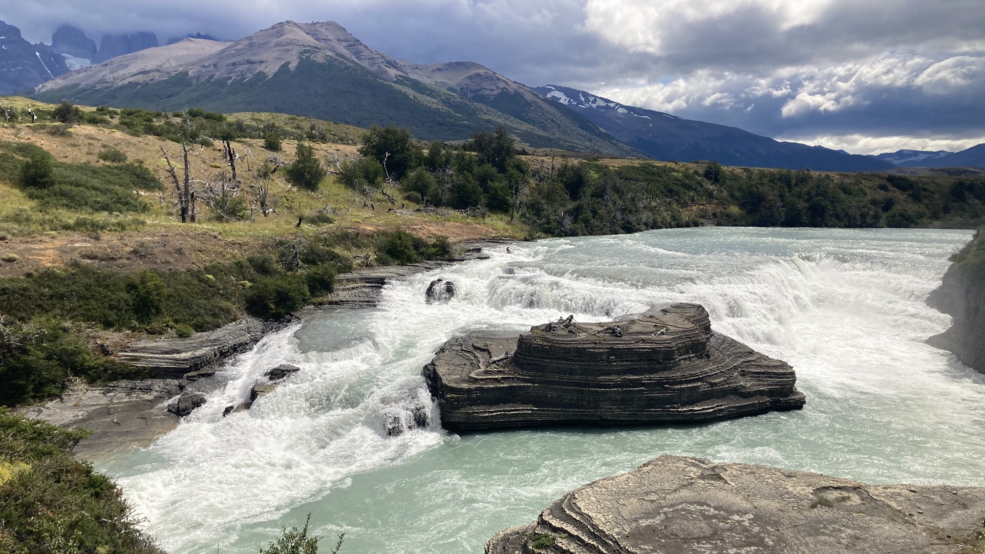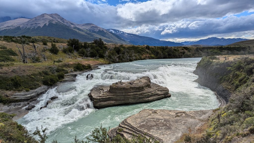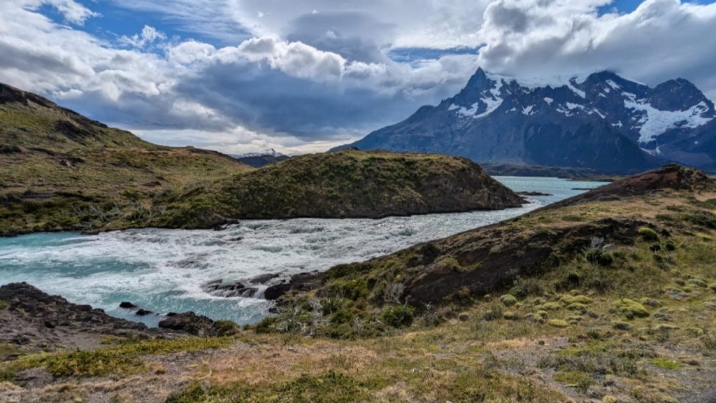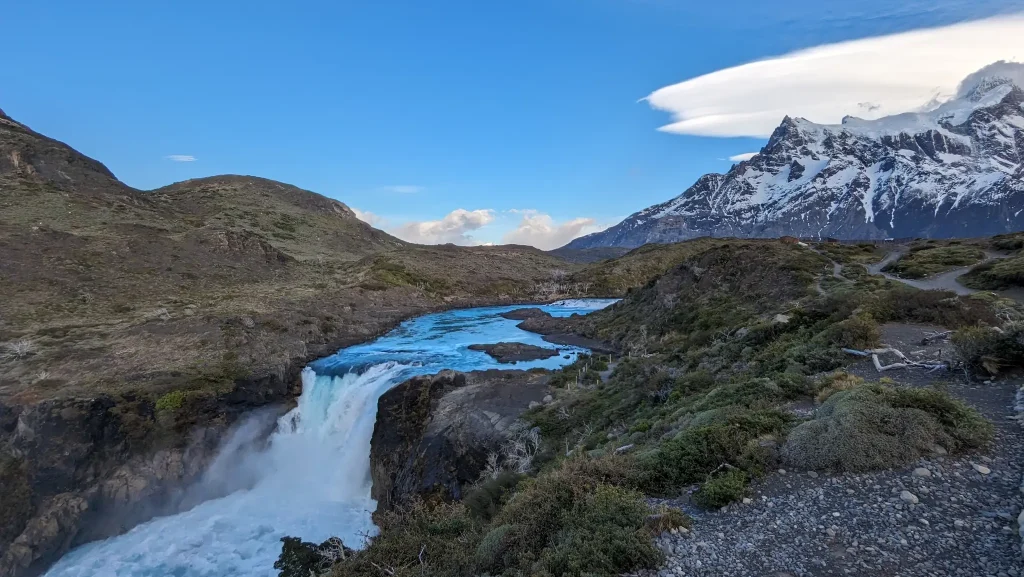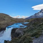 Wir waren fasziniert von dem 10 Meter hohen Wasserfall, der in den Pehoe-See mündet, so sehr, dass wir manchmal den Wind vergessen, der ständig gegen unsere Kleidung schlägt, und den Hunger, den wir in unseren Mägen zu spüren beginnen. Und ohne Vorwarnung werden wir von einem argentinischen Touristen aus dem Bann gerissen, der uns freundlich begrüßt und uns ermutigt, den Aussichtsturm von Cuernos zu besuchen. Wir werden nur eine Stunde brauchen, um dorthin zu gelangen. Auf geht es?
