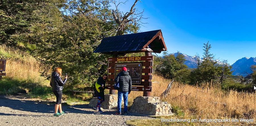 Hinweistafel zum Fitz Roy Viewpoint (zusätzlich 40 min)