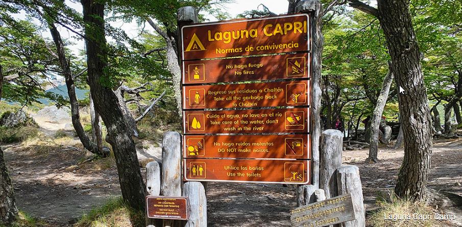 Es handelt sich um eine beliebte Route und die Abzweigung zur Laguna Capri ist gut ausgeschildert und markiert. Der erste Abschnitt dieses Weges ist etwas steil und führt hinauf zum «Mirador Rio De las Vueltas», einem natürlichen Aussichtspunkt mit Blick auf das Flusstal.